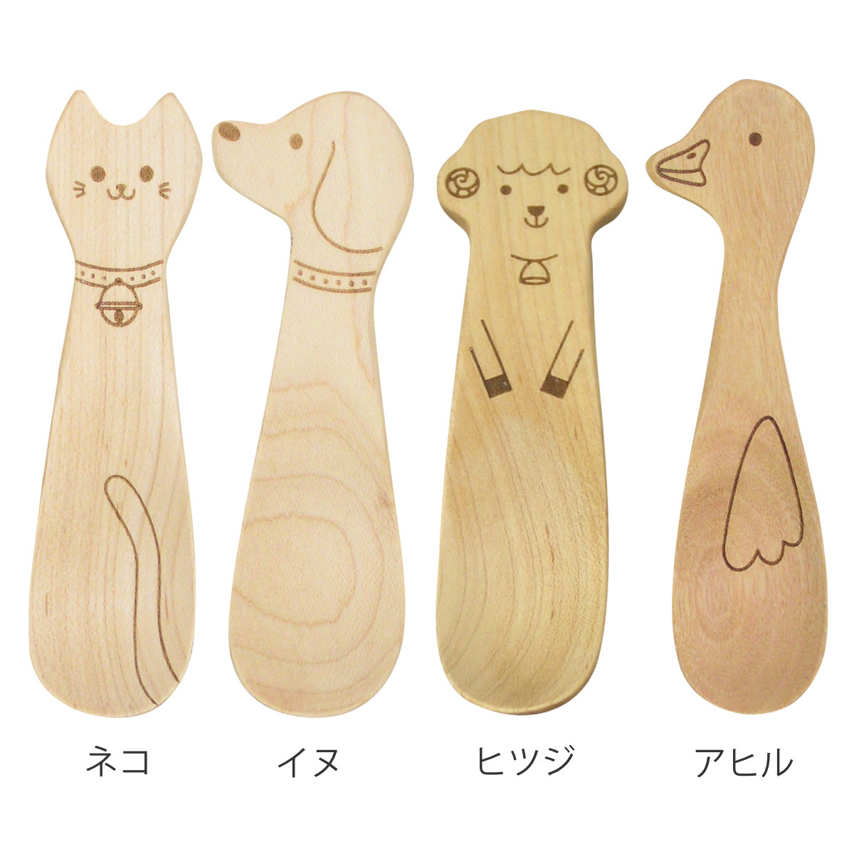見ているだけで楽しくなる 動物スプーンかわいい動物のスプーンです。木製食器製造の長年の技術の経験を活かし、それぞれの動物ならではの様子をカタチにしながらも、食事やデザートで使いやすい形状に仕上げています。