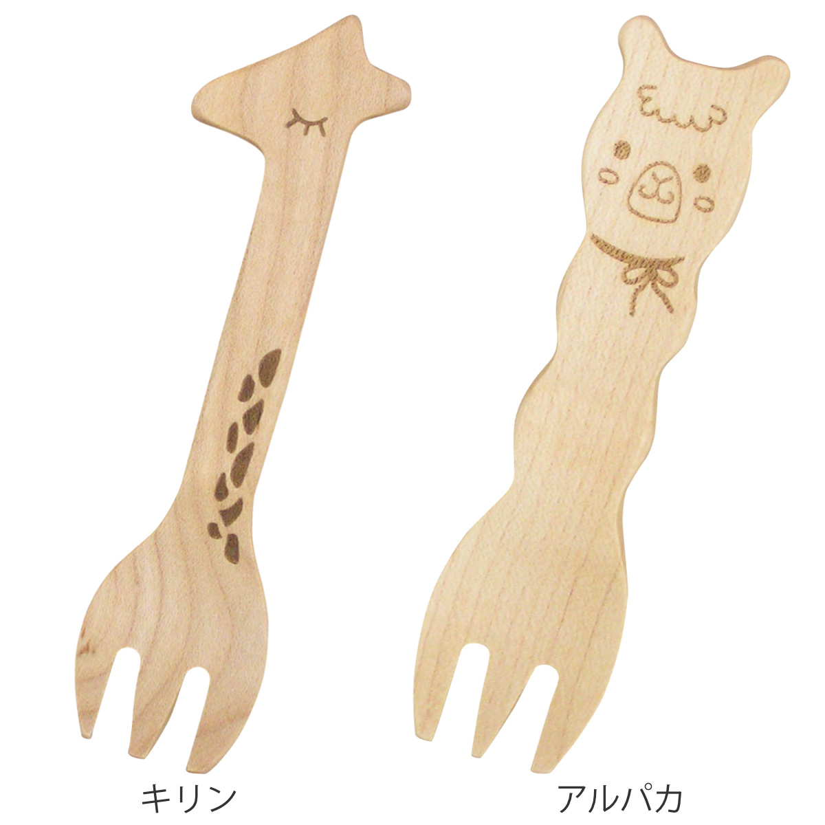 見ているだけで楽しくなる 動物フォークかわいい動物のフォークです。木製食器製造の長年の技術の経験を活かし、それぞれの動物ならではの様子をカタチにしながらも、食事やデザートで使いやすい形状に仕上げています。