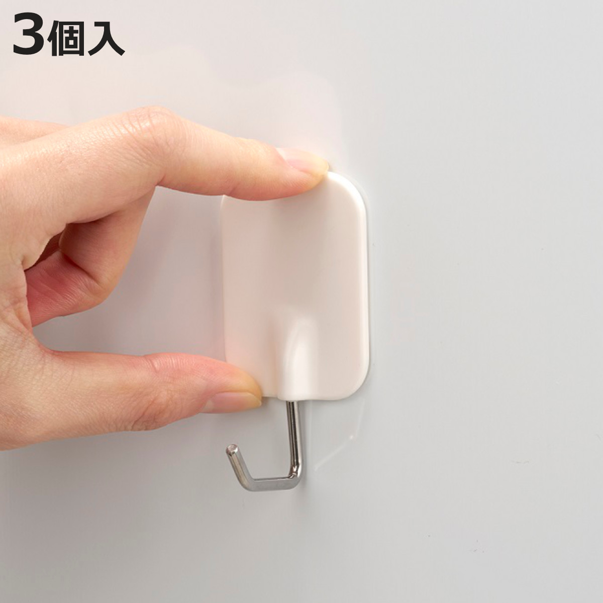 強い粘着力で固定 厚みのあるものもOK●厚みがあるものも掛けられる粘着ツールフック3個入りです。