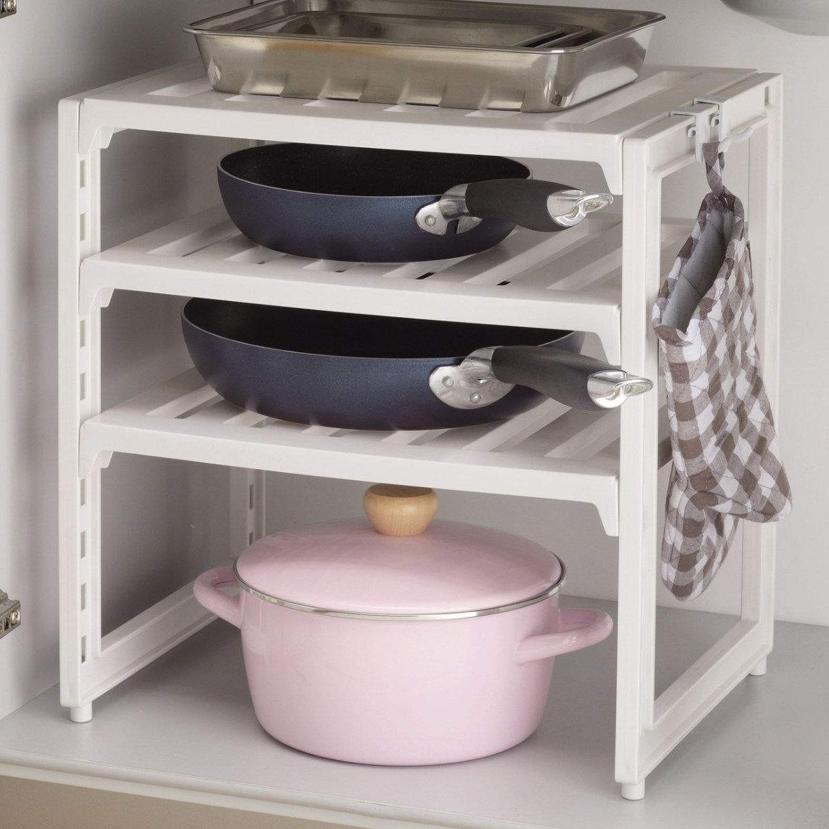 3段ラック キッチン 洗面所 洗面台 シンク 白 ホワイト 日本製 新生活 おすすめ 洗面台下 流し台下 コンロ下 フライパン 鍋 調味料 キッチン収納棚 有効活用 整理整頓 キッチン用品 キッチン収納 台所収納 整理用品 収納用品 オススメ 便利 シンプル お洒落 おしゃれ オシャレ スタイリッシュ 日常 LH5264 LH3378