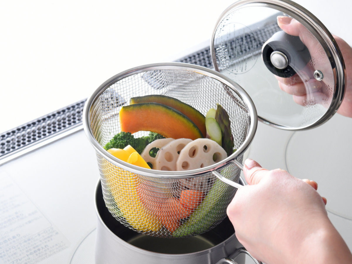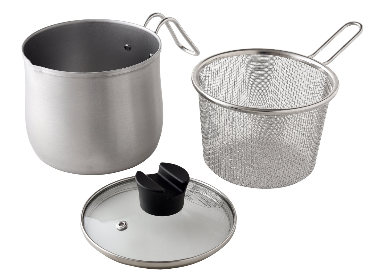 | 材質 | 鍋・ストレーナー:ステンレス鋼、ガラス蓋:強化ガラス製器具(全面物理強化)・フェノール樹脂・ステンレス鋼 |