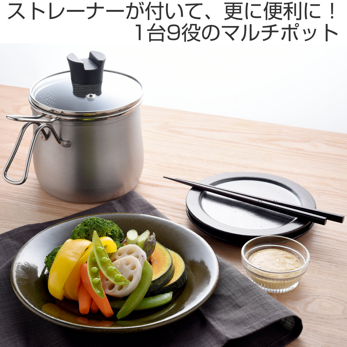 | 注意事項 | ※ガラス蓋のみ中国製です。 ※鍋本体・ストレーナーは食器洗い乾燥機でのお手入れが可能です。ガラス蓋は食洗機に対応しておりません |