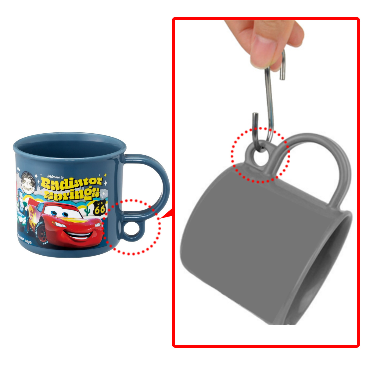 逆さに吊れる清潔設計コップの持ち手の下にフックなどに掛けられる部分が付いているので、使用後や洗った後などに逆さにして吊っておけば、水切れが良くとても衛生的です。