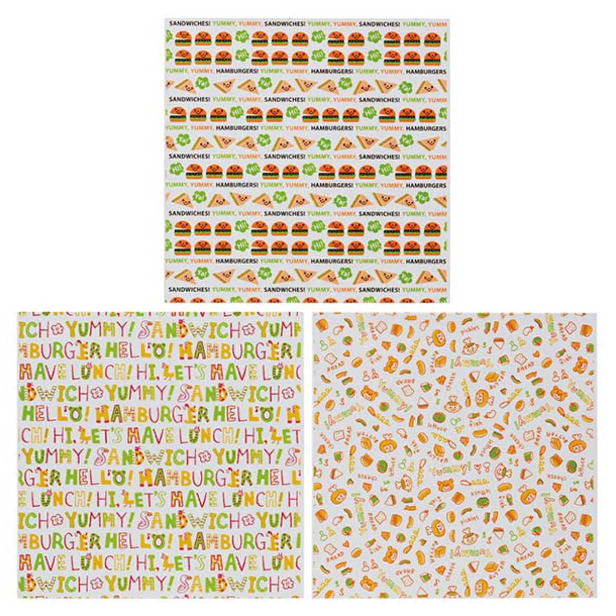 ハンバーガーやサンドイッチをカラフルに包める●ハンバーガーやサンドイッチなどを包むのに便利なラッピングシートです。