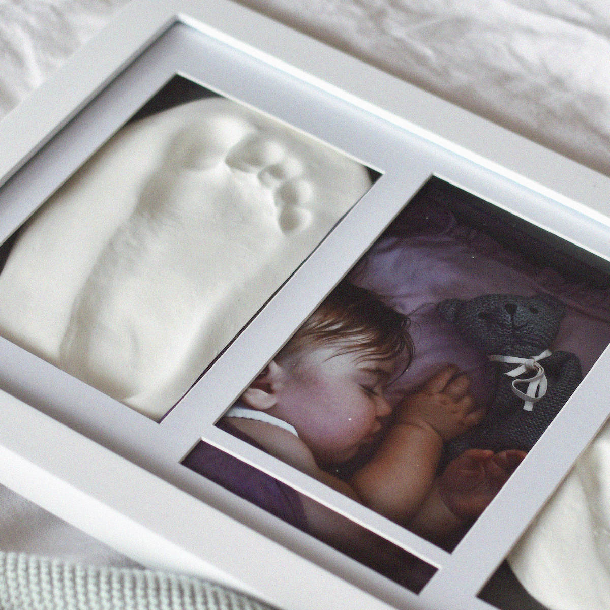 ●手または足をそっと押し込んで型押しをします。