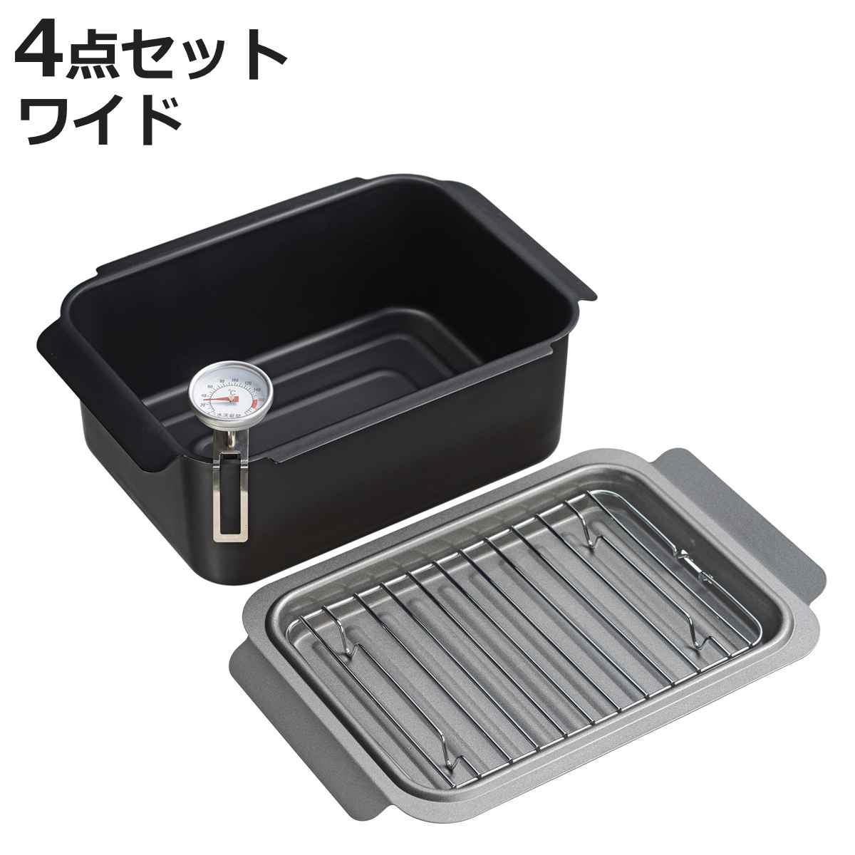 取り外せる温度計付き温度計が付いているので温度管理がしやすく、揚げ物に最適な温度を一定に保てます。