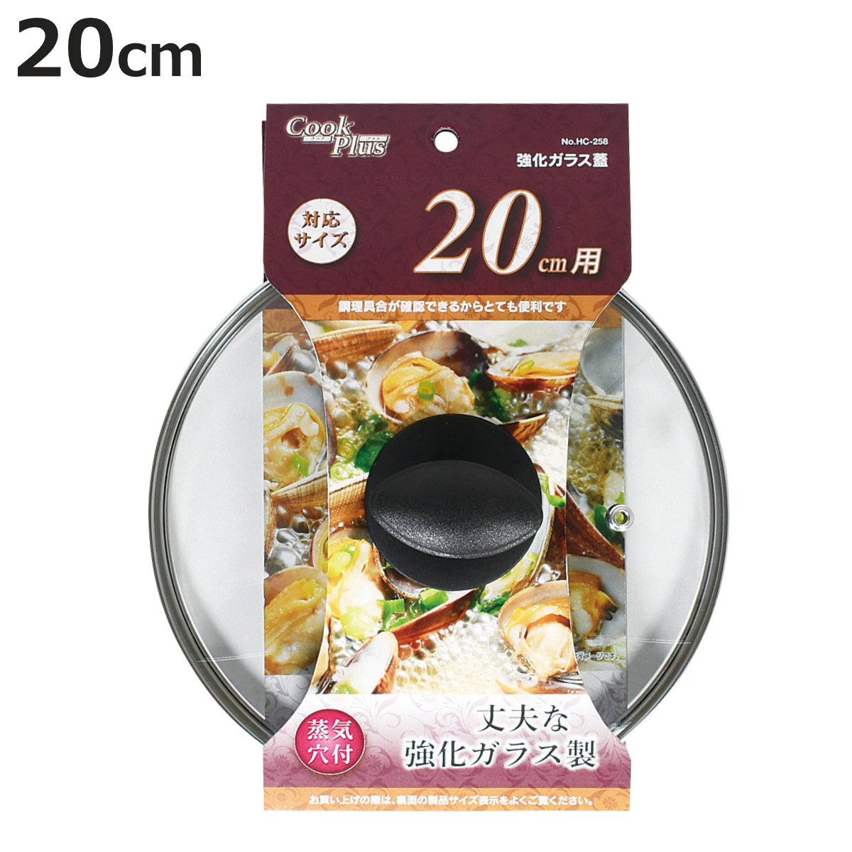 丈夫でキズつきにくい!料理がよく見える20cm用の蓋●料理中、蓋を開けずにそのまま中の様子が見えるガラス製の蓋です。程よい重みもあるため、強い蒸気で蓋が浮いてしまうこともありません。