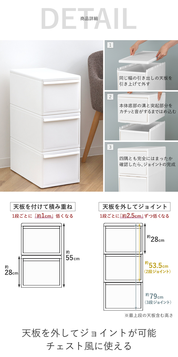 同じ幅の商品をジョイントすると、全体の高さは1段ごとに