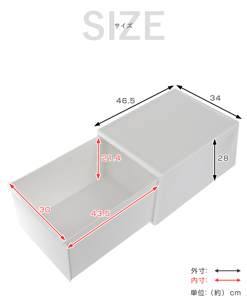 | サイズ | 約 幅34×奥行46.5×高さ28(cm) 引出し内寸:約 幅30×奥行43.5×高さ21.4(cm) |
