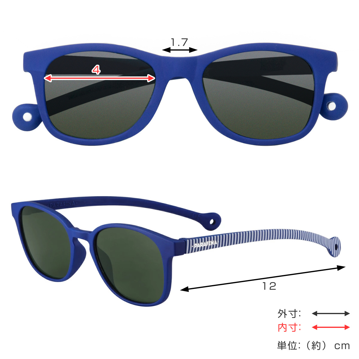 | サイズ | レンズ幅:約 4(cm) ブリッジ:約 1.7(cm) テンプル:約 12(cm) |