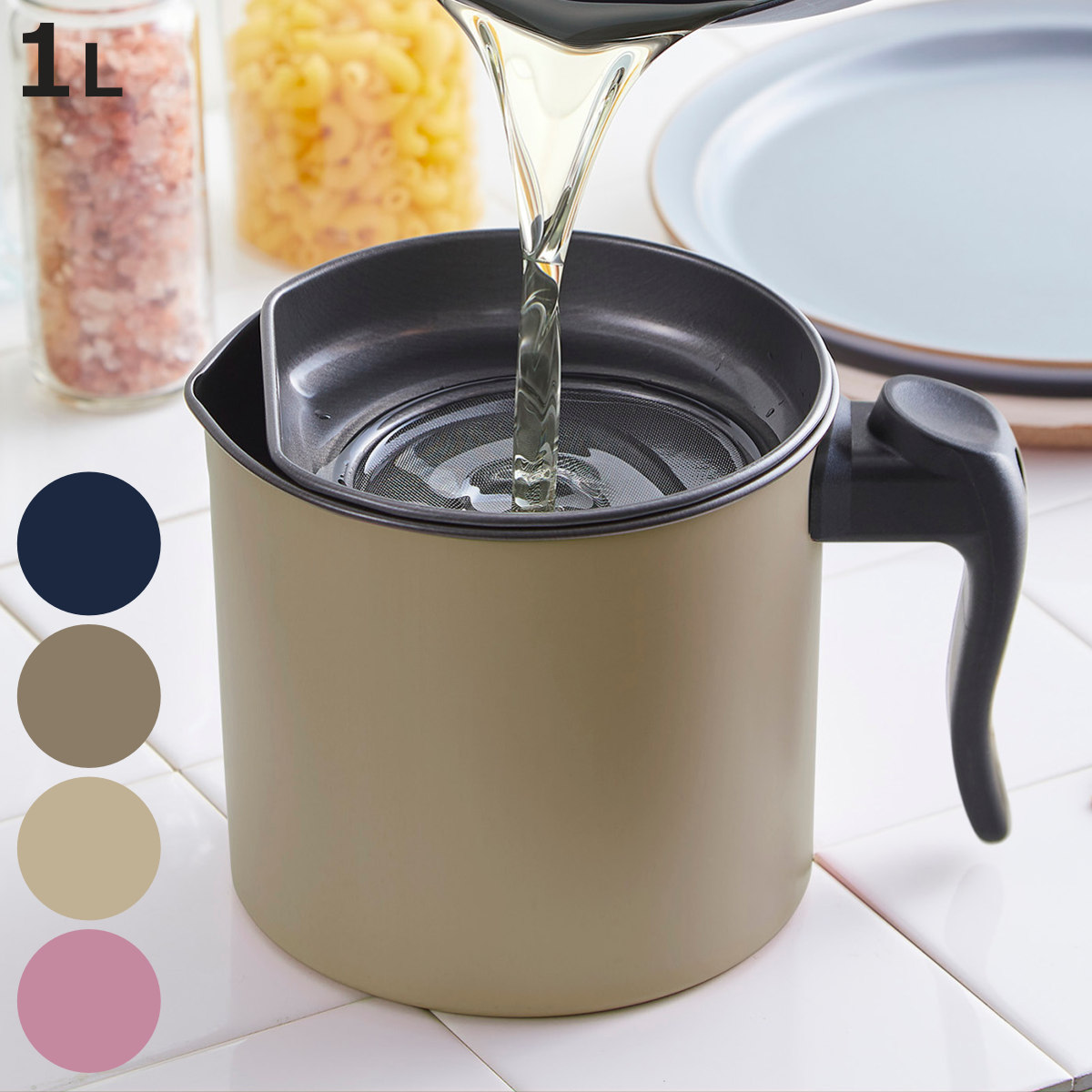 キッチンをおしゃれに彩るオイルポット●お手入れ簡単なフッ素樹脂コーティングされたリグランテシリーズのオイルポットです。