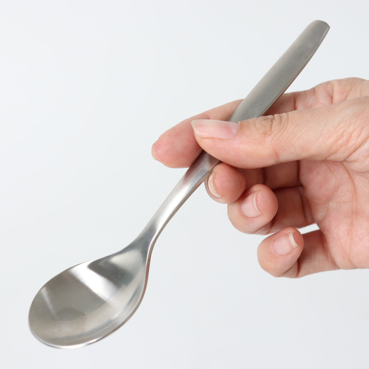 「手に取った瞬間、使った時に満ち足りた感覚になるような、感覚にうったえかけるようなもの」をコンセプトに作られたスプーンです。すくいやすさや口当たり、重量バランスにもこだわってつくられています。