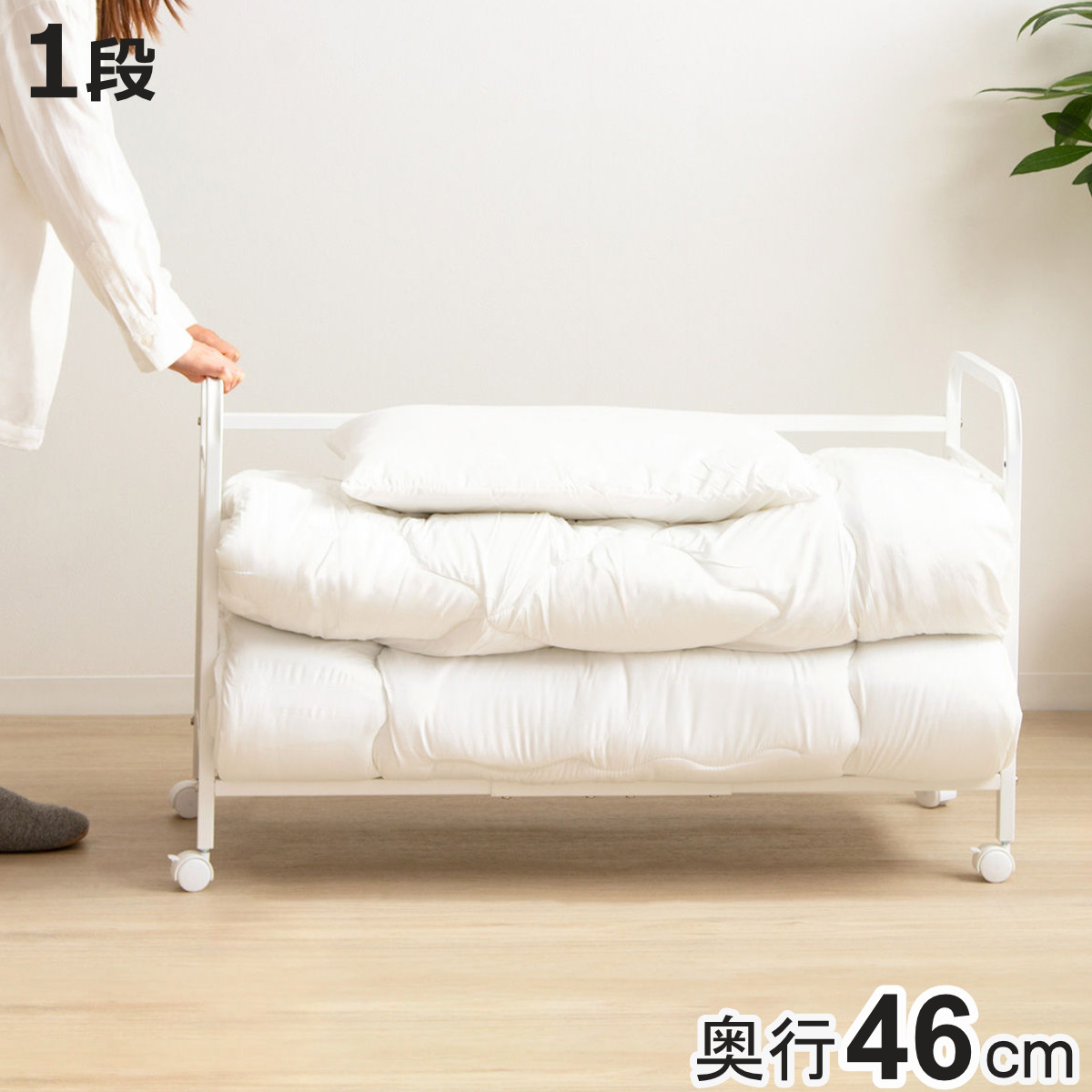 ●布団の収納がラクになる、1段の奥行スリムタイプの布団収納ラックです。