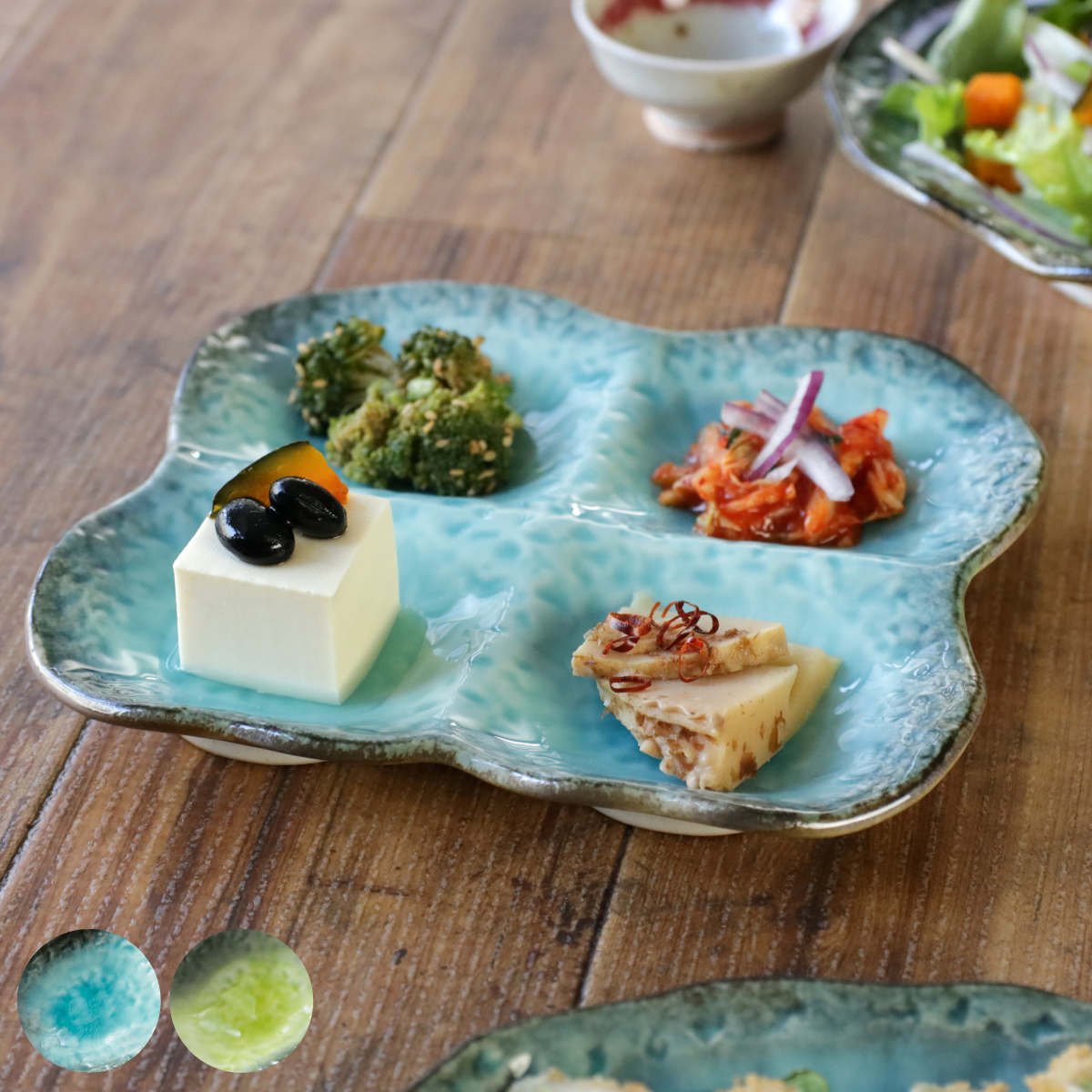 仕切り皿 19.5cm プレート 4つ仕切り KANADE 陶器 ( 電子レンジ対応 皿 お皿 小皿 和食器 )