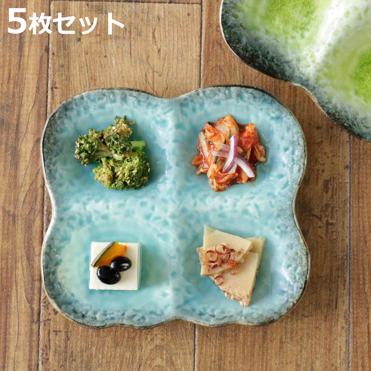 仕切り皿 19.5cm プレート 4つ仕切り KANADE 陶器 同色5枚セット ( 電子レンジ対応 皿 お皿 和食器 )