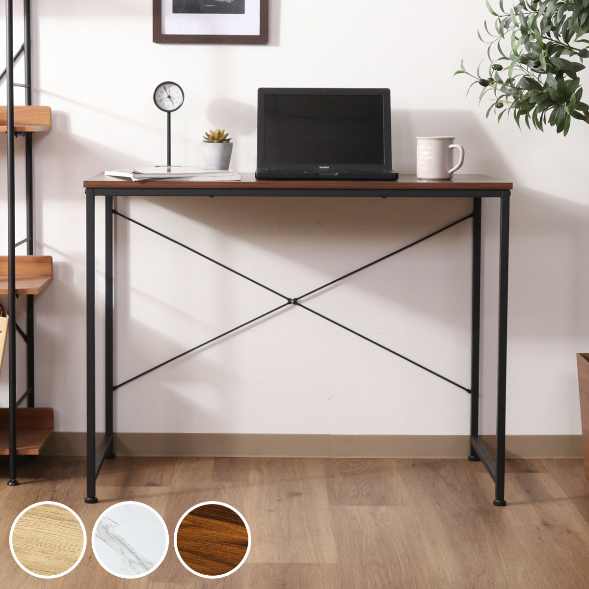 大理石調 木目調 天板 スチール脚 シンプル 北欧風 ヴィンテージ調 カントリー調 ナチュラル パソコン PC 在宅ワーク テレワーク リビング学習 リビング 省スペース つくえ 勉強 学習 大人 子ども 子供部屋 おしゃれ お洒落 オシャレ インテリア 家具