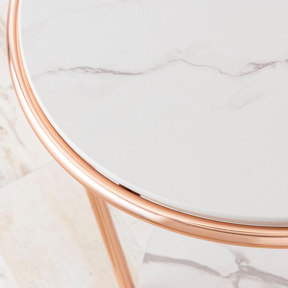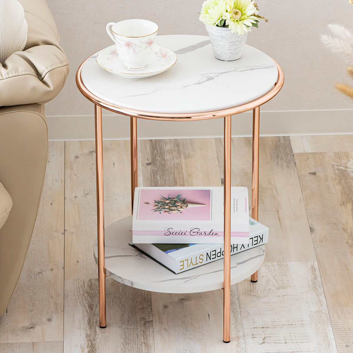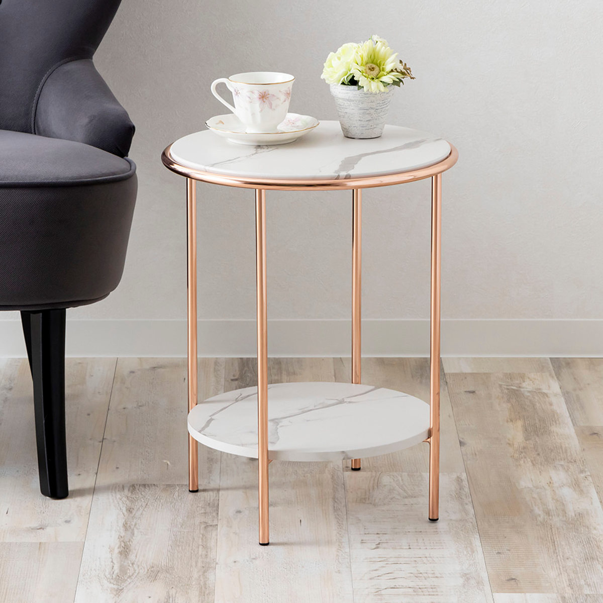 大理石柄×ピンクゴールド脚のサイドテーブル