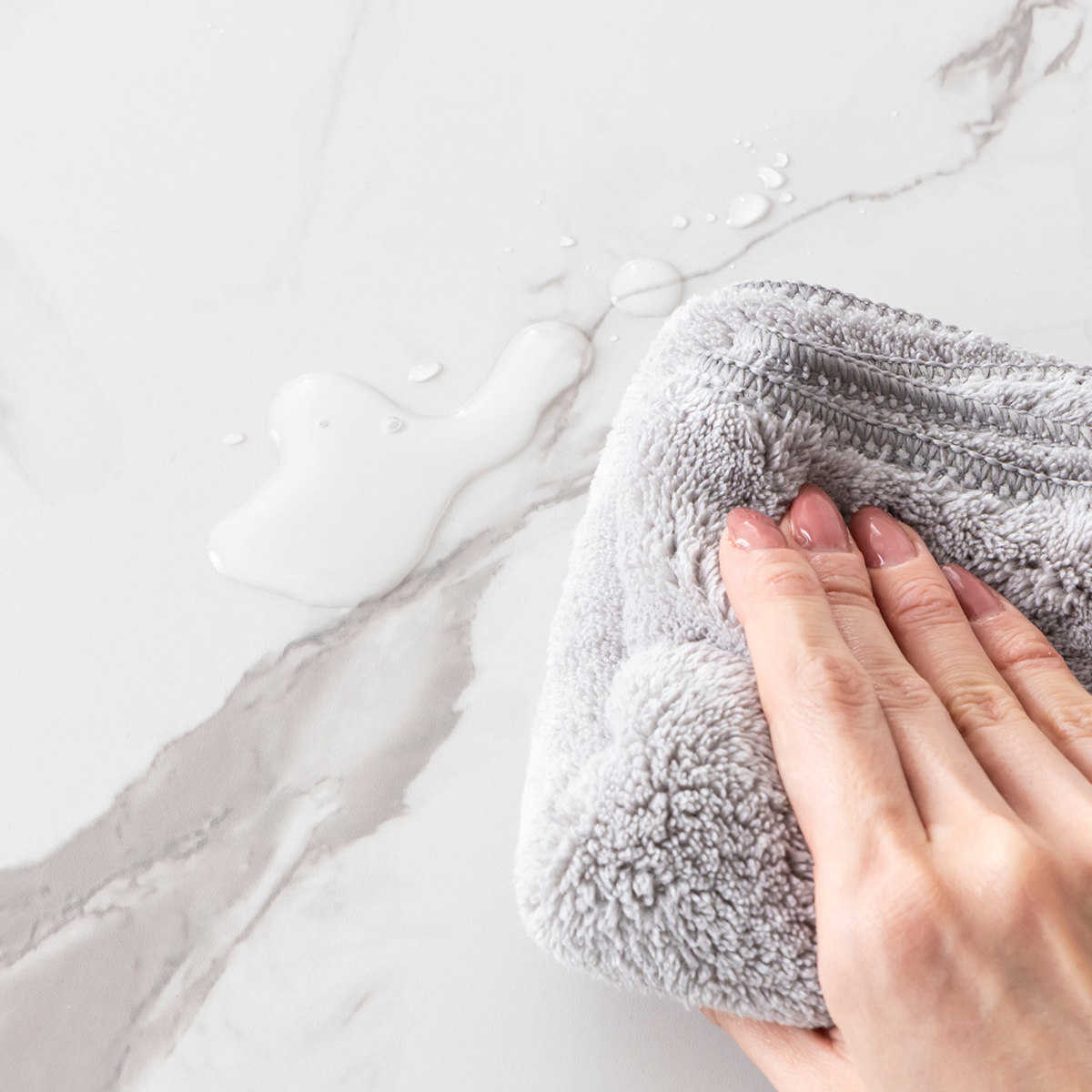 大理石柄の天板は、水や汚れに強い塩化ビニル素材でお手入れしやすいです。