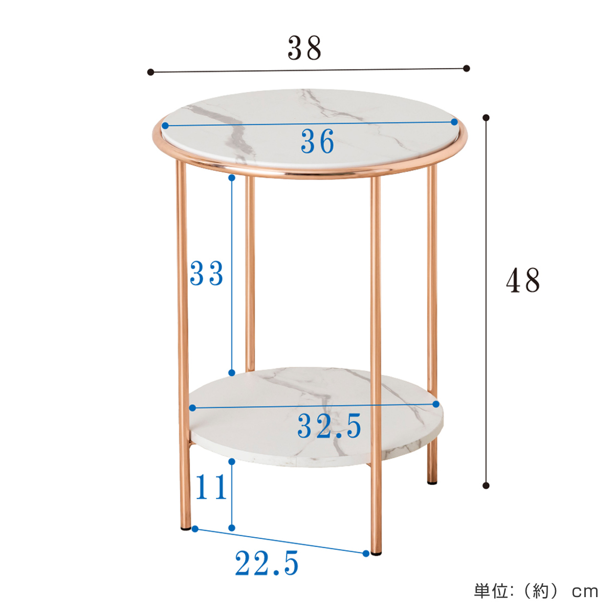 サイドテーブル 円型 直径38cm 高さ48cm ( ナイトテーブル ミニテーブル ソファ ベッド 横 大理石柄 丸 ラウンド )