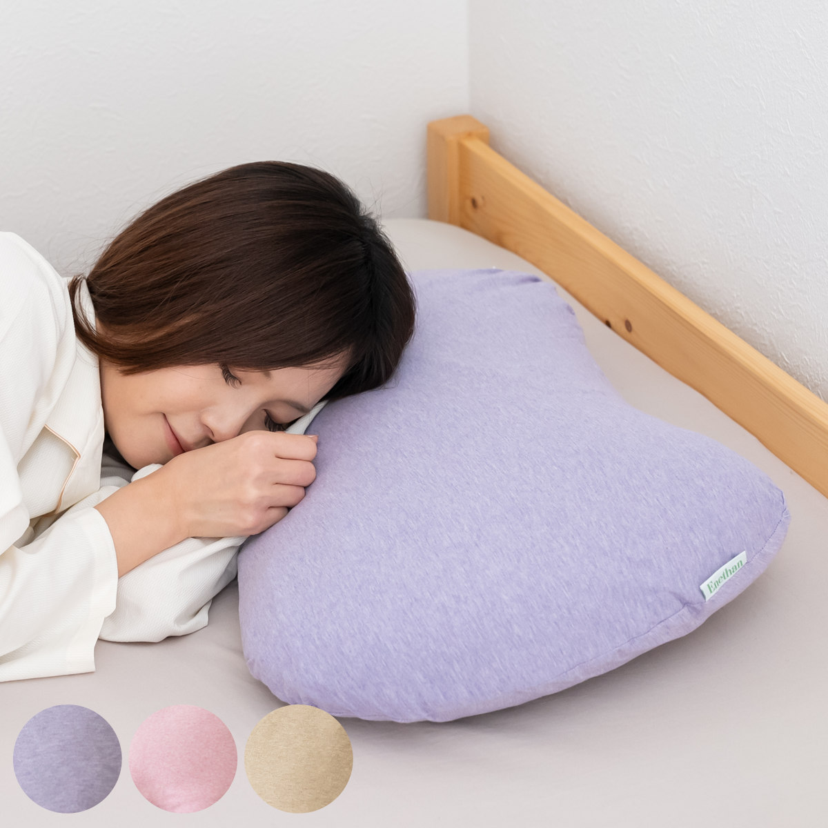 肩や首元の圧迫感を抑えて毎日の快眠をサポートする枕です。肩から首へのラインをデザインに反映しているので、顔が自然な高さになり、肩や首の負担が軽減されます。カバーは、肌着などにも使われる、オーガニックコットン100%の天竺編みの生地を使用し、なめらかな肌触りです。