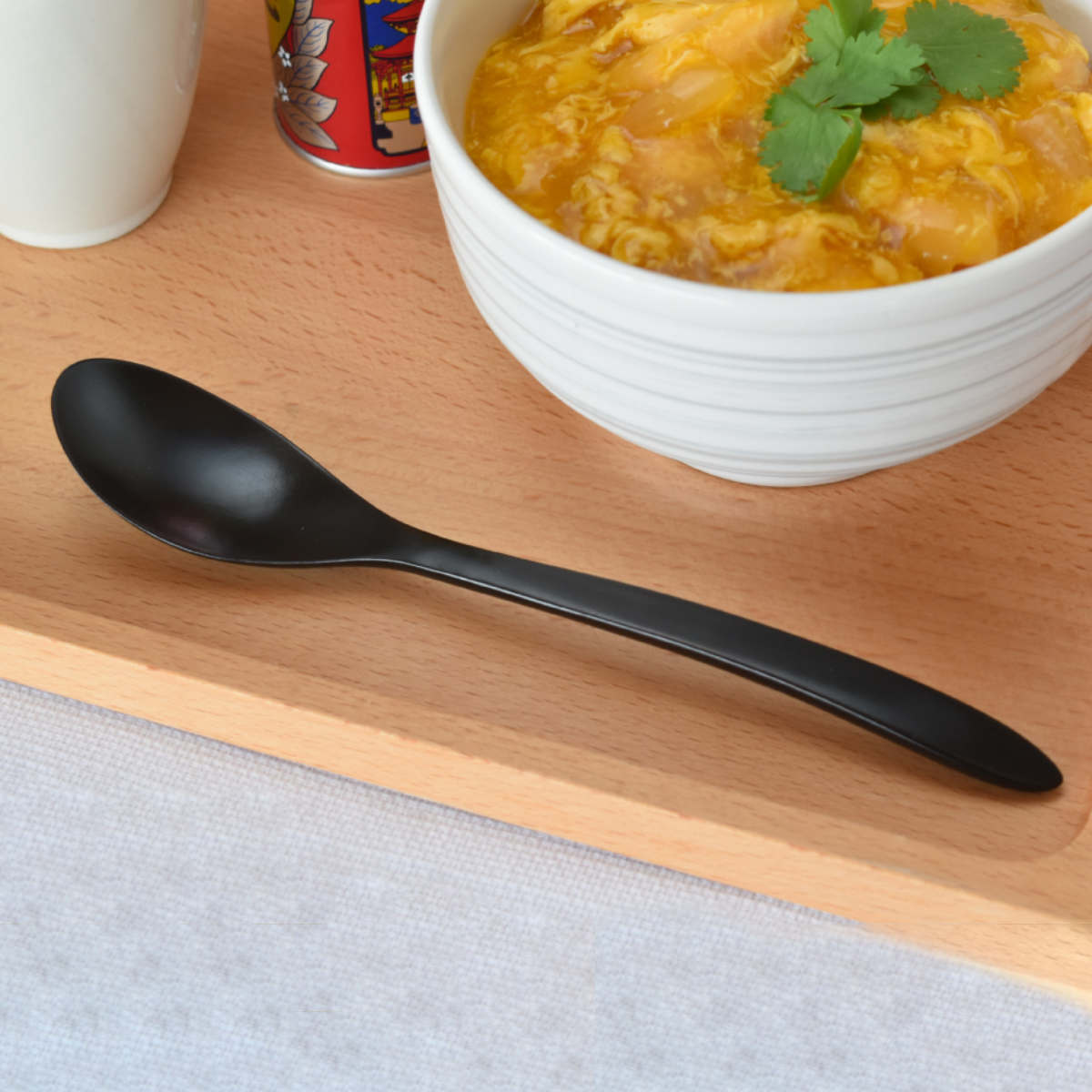カタチにこだわった漆塗りの木製スプーンスプーンのツボ(すくう部分)と柄の境目の無いなめらかなフォルムは、スプーンのさし心地、口から抜く際の口離れ、持ちやすさのバランスが考え抜かれた形状です。柄が長いので丼ものやカレーなどおすすめです。