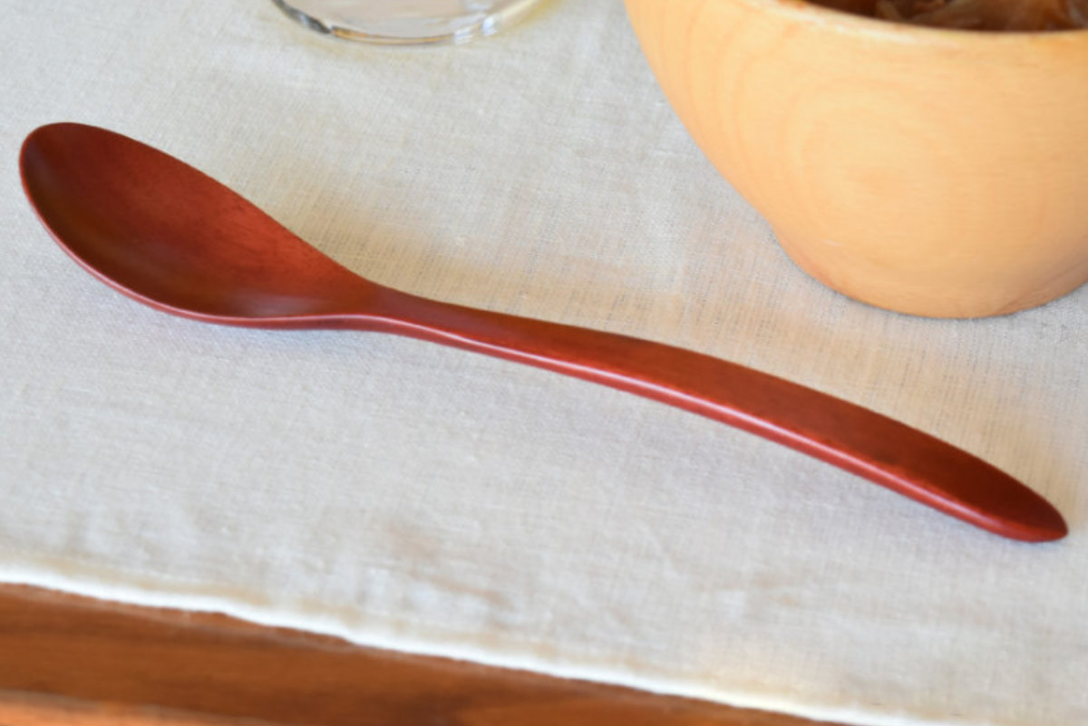 こだわりの木製スプーンを天然の漆で仕上げた逸品●形状にこだわった漆塗りの木製スプーンです。