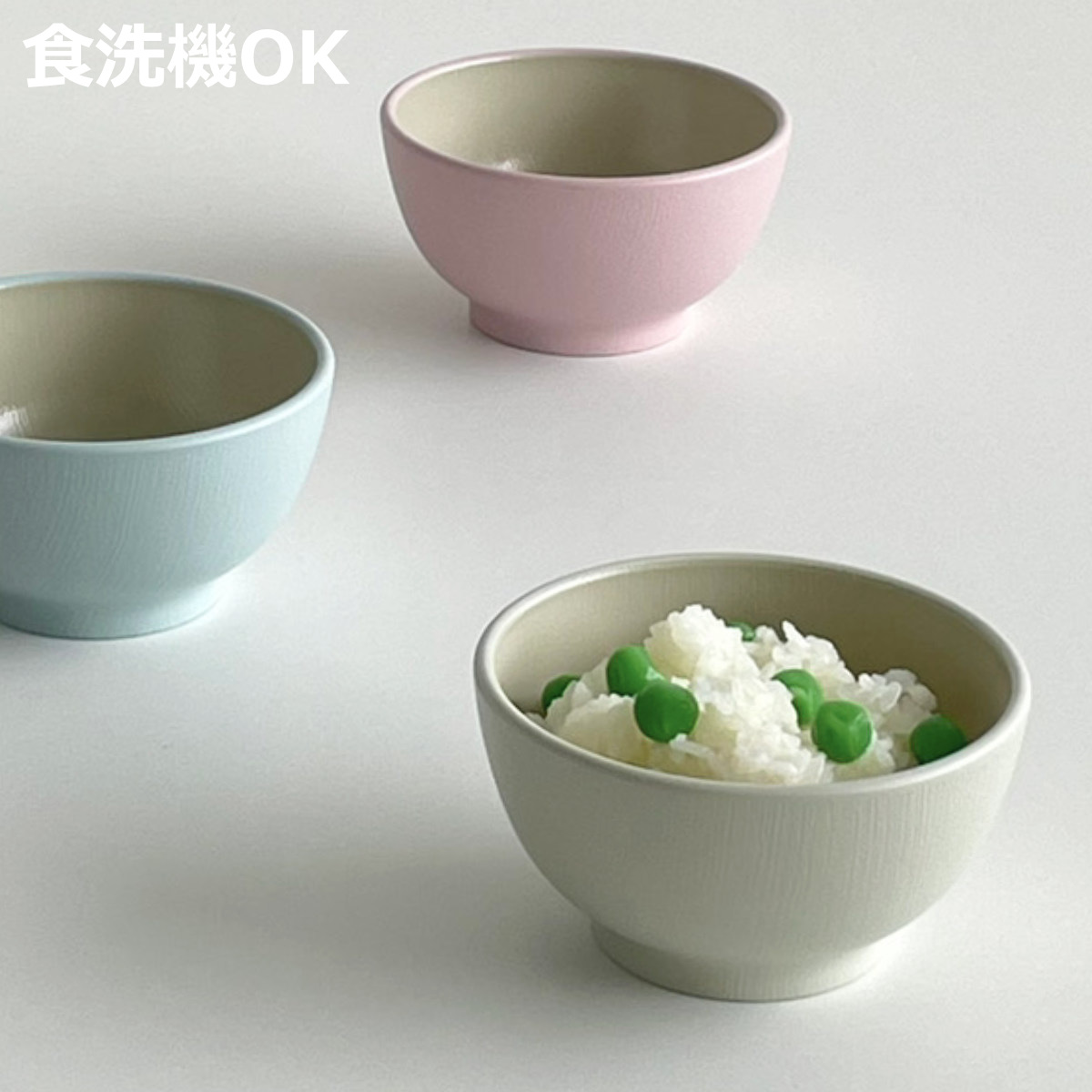 ペールカラーの子ども用茶碗やさしい色合いのペールカラーの子ども用茶碗です。お子様の手にすっぽりと収まりやすい小ぶりなお茶碗です。樹脂製で割れにくく、安心してお使いいただけます。