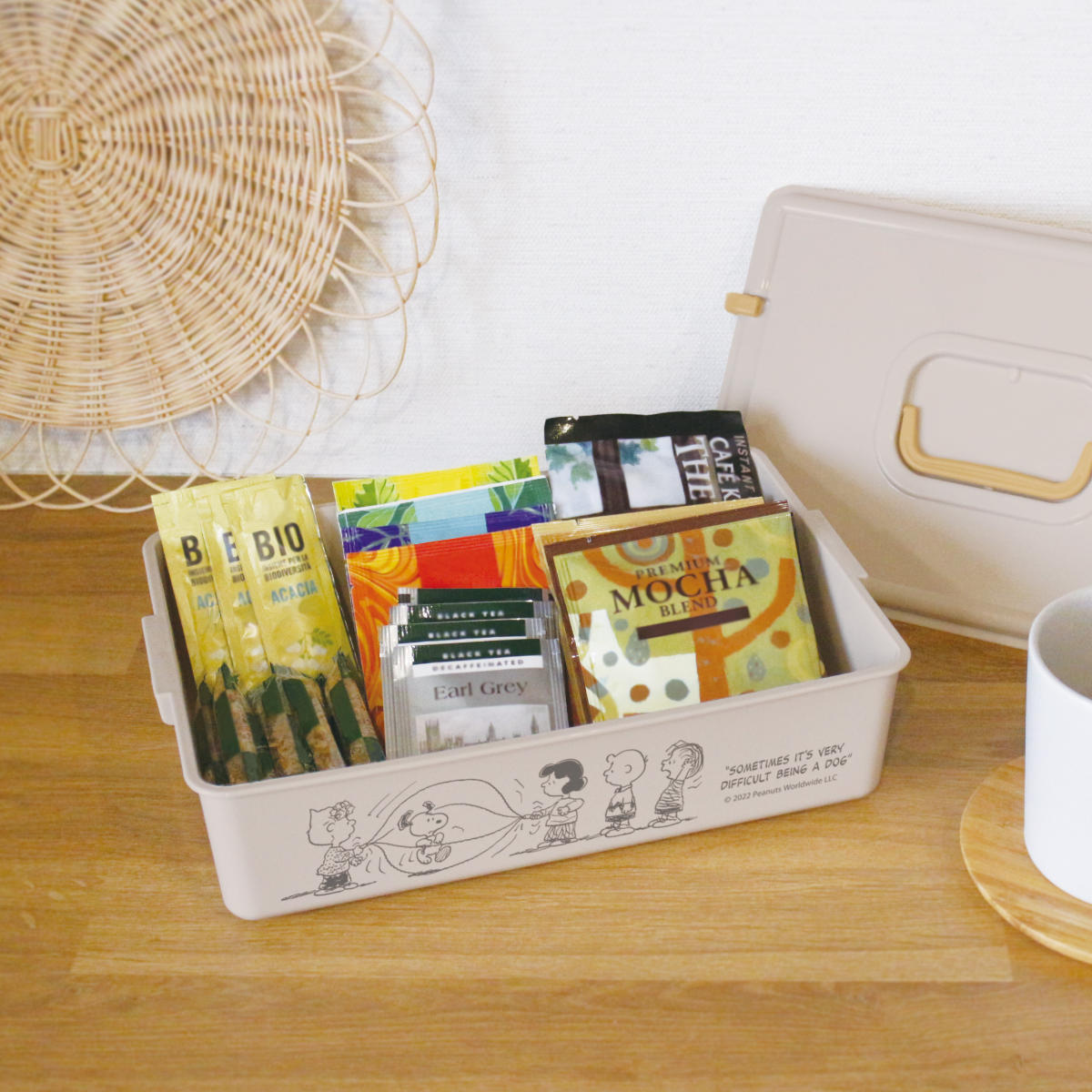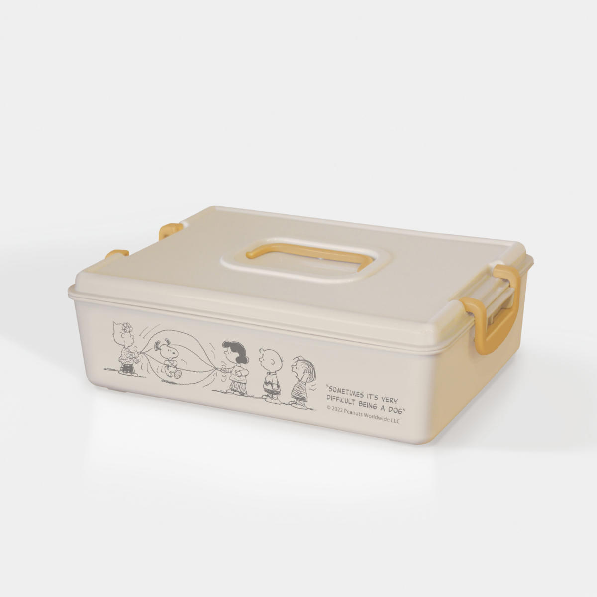 取っ手付き フタ付き キャラクター 道具箱 裁縫箱 文房具 キッチン 整理 卓上 幅27.5×奥行19×高さ8.5cm 蓋 ふた フタ お道具箱 裁縫道具 救急箱 薬箱 容器 箱 蓋付き かわいい キャラ プレゼント ギフト グッズ キッチンツール ケース ボックス 薄型 整理整頓 整頓 片付け 便利グッズ 便利用品 人気 おすすめ オススメ 雑貨 仕切りなし 約 幅28 奥行20 高さ10 cm センチ プラスチック ベージュ アイボリー ホワイト 白 ピーナッツ PEANUTS LH16591