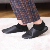 リラックスして履ける、ゆったりとした形状のスリッパです。ホテルにあるようなシンプルなデザインと、マットなレザー調生地が上品な印象を与えます。