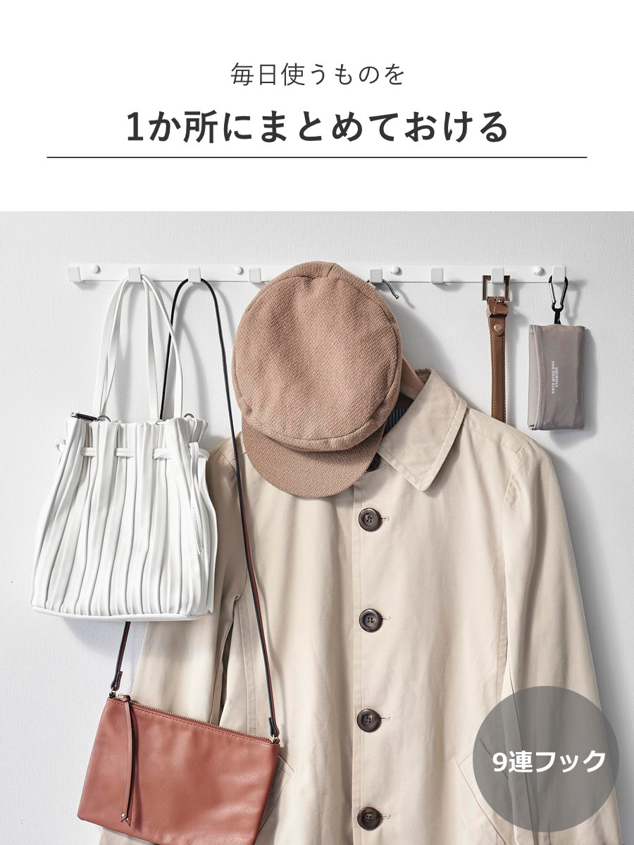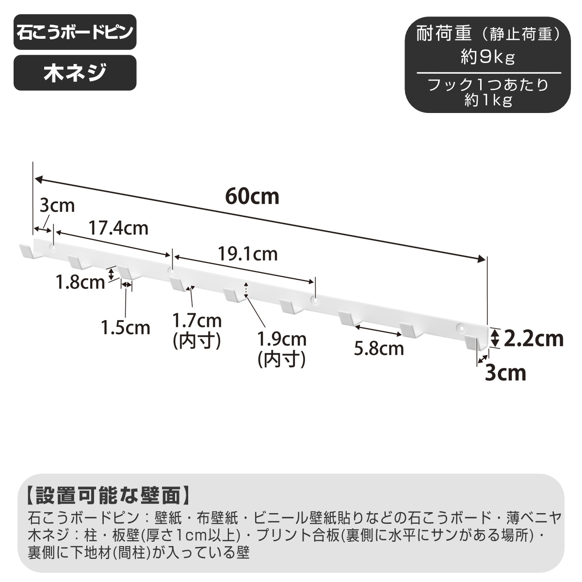 | 耐荷重 | 約9kg フック1つあたり:1kg(静止荷重) |