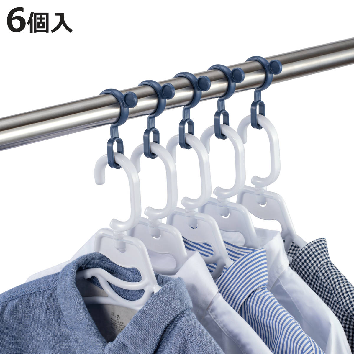 ●物干し竿にパチッと固定できるハンガーフック6個入です。