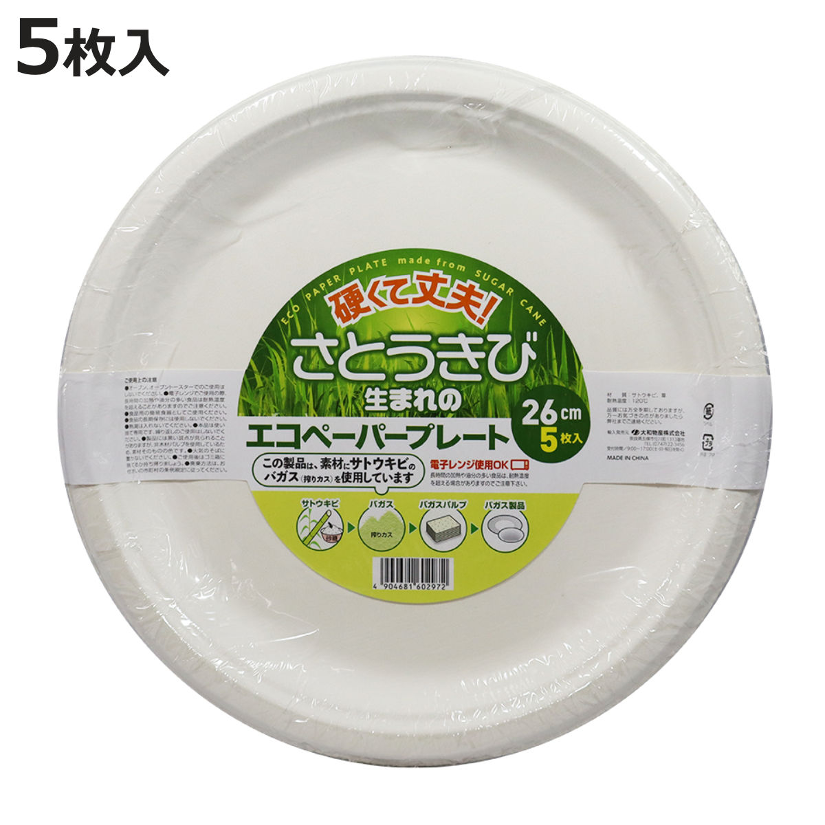 紙皿 新エコペーパープレート 26cm 5枚入 ( 電子レンジ対応 丸型 26センチ ペーパープレート 紙プレート さとうきび 硬い 丈夫 )