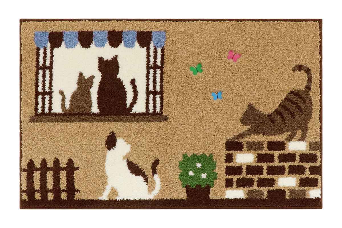 ミニキッチン 洗面所 室内 ラグ 滑り止め加工 かわいい ネコ 猫 エントランス リビング 寝室 ランドリー 玄関用 屋内用玄関マット 屋内用マット 敷き物 油ハネ防止 汚れ防止 床 カワイイ おしゃれ オシャレ 使いやすい オススメ 便利 猫好き 動物 アニマル グレー ベージュ LH17834 LH1477