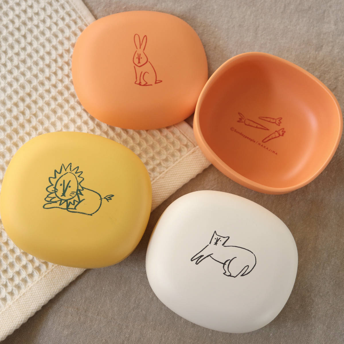 ライオンさんの好きな食べ物って何だろう?最後までキレイに食べきると、どーぶつさんの好きな食べ物が顔を出します。声かけもしやすく、親子で楽しみながら食事ができるデザインです。