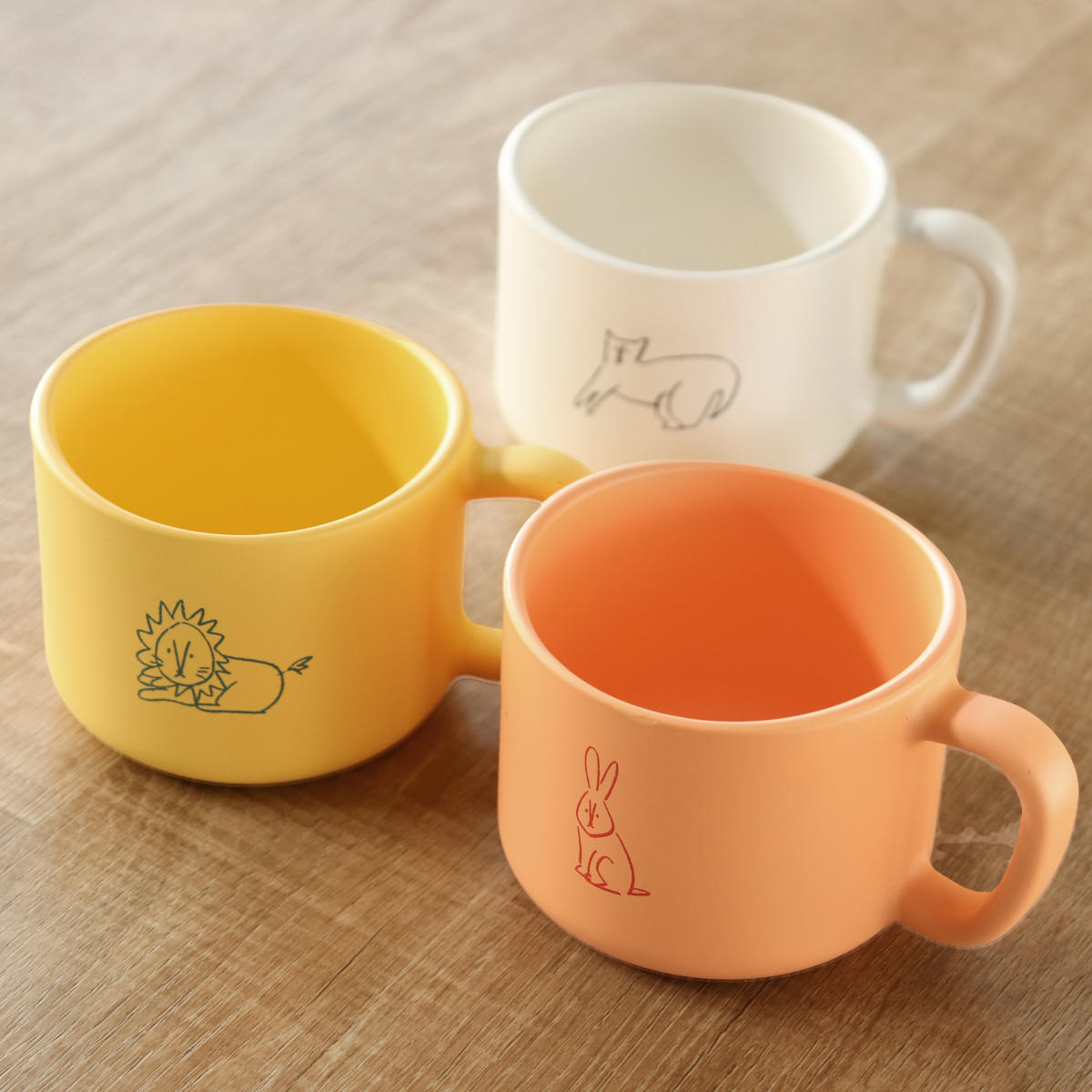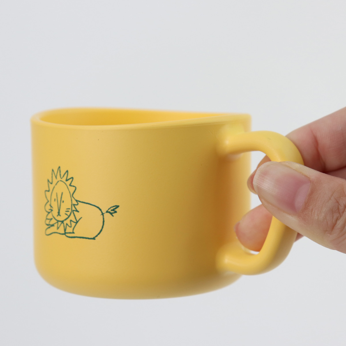 コロンとした形が愛らしい持ち手付きコップ 200mlお子さまのランチタイムや歯みがきの時間に便利に使えるコップです。角がないコロンとした愛らしい形が食卓を和ませてくれます。