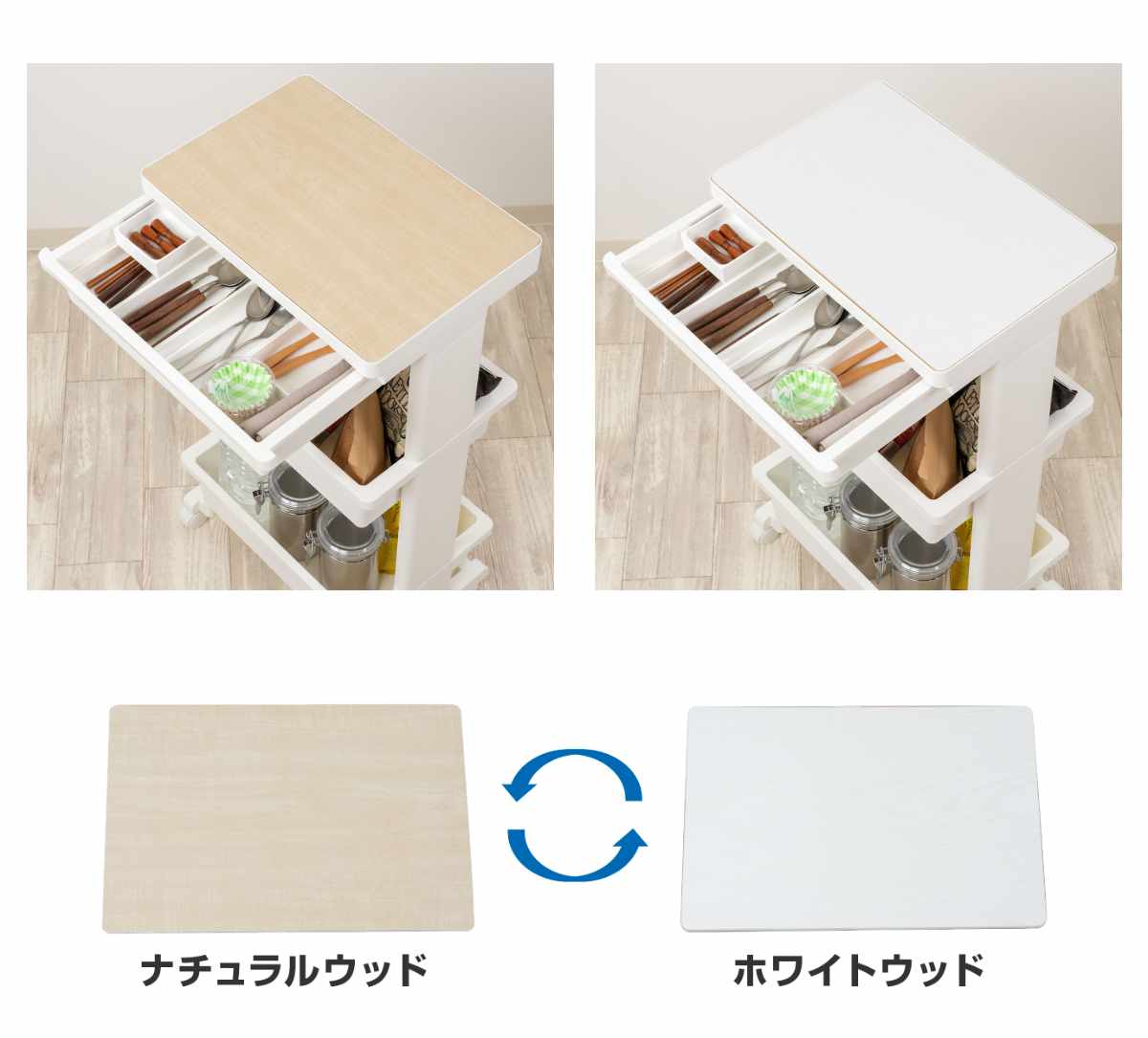 ![]() テーブルワゴンミニ | ![]() モバイルワゴンミニ | ![]() テーブルワゴン3段プラス |