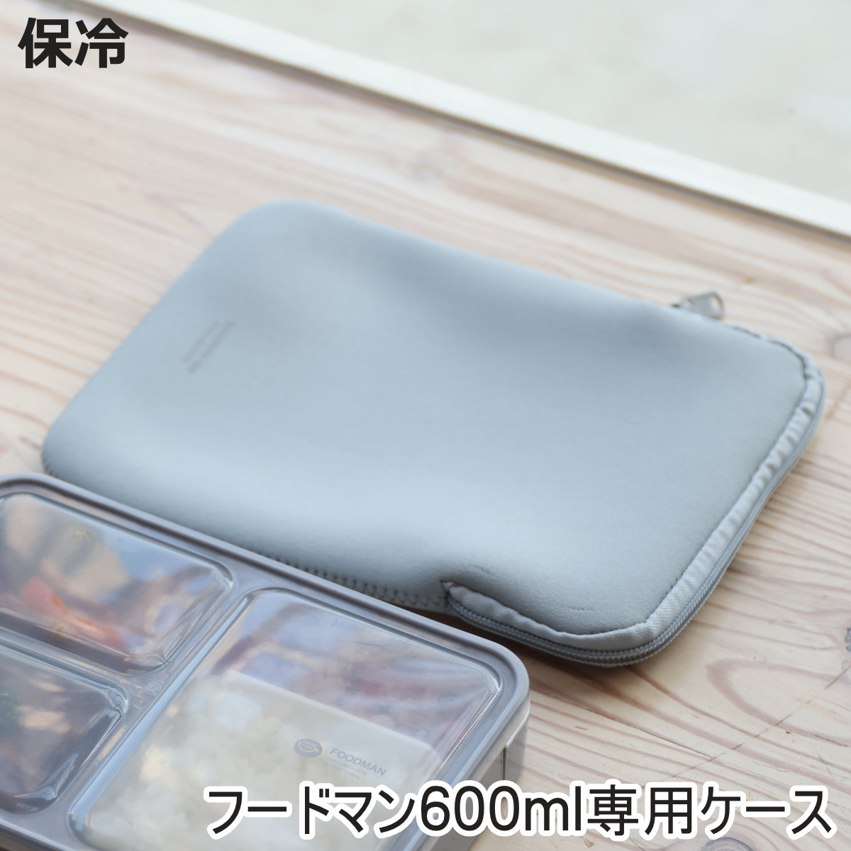 フードマン 600ml専用ケース お弁当箱フードマン600mlに対応した専用ケースです。フードマンがピッタリ収まるサイズなので、スマートに持ち運べます。保冷効果があり、暑い日のお弁当の持ち運びに保冷ケースとしてご使用いただけます。ウェットスーツ素材を使用しており、汚れても洗えるので衛生的です。