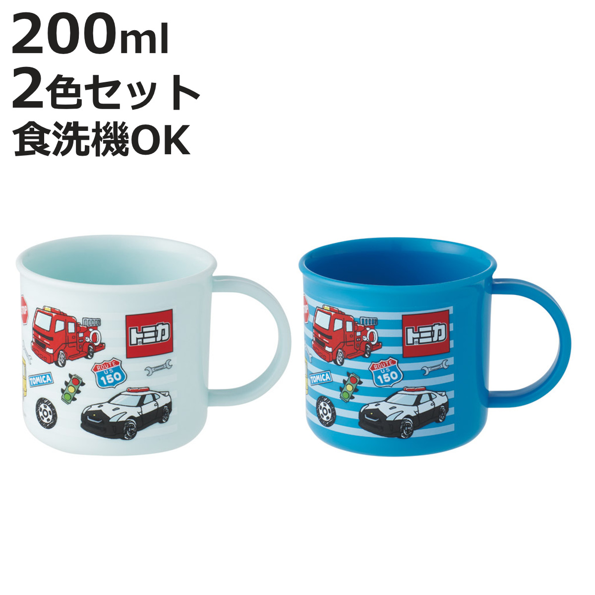色違い2個セットの取っ手付きコップ●トミカの色違い2個セットの取っ手付きコップです。