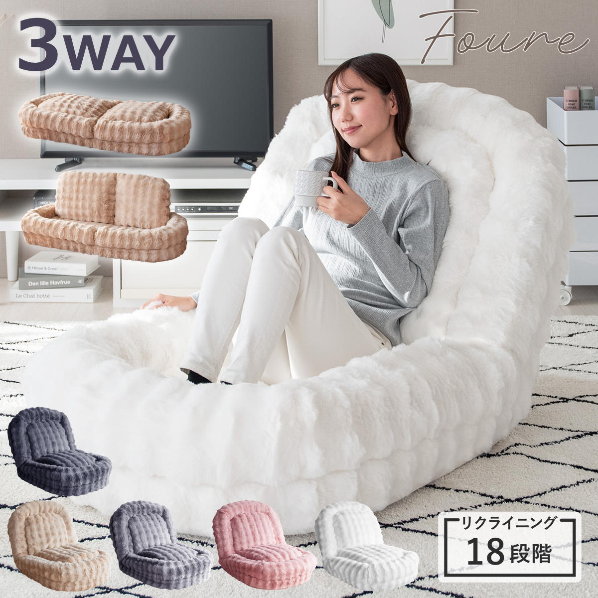 ![]() ふわとろ3way座椅子 | ![]() ソファベッド ふわもこタイプ 【▲このページの商品】 | ![]() ソファベッド ブークレ |