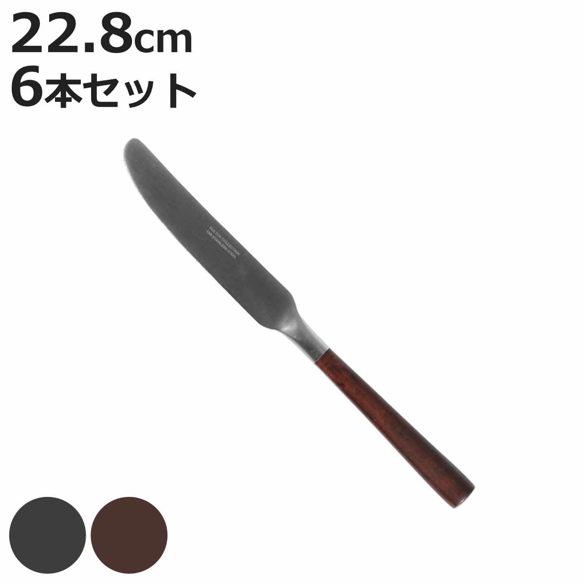 どこか懐かしいディナーナイフ 同色6本セット合成樹脂の持ち手とステンレスのカジュアルなデザインのディナーナイフです。持ち手は重すぎず手にフィットします。マットなステンレスは細かい傷を気にする事なく長くお使い頂けます。贈り物にも喜ばれます。