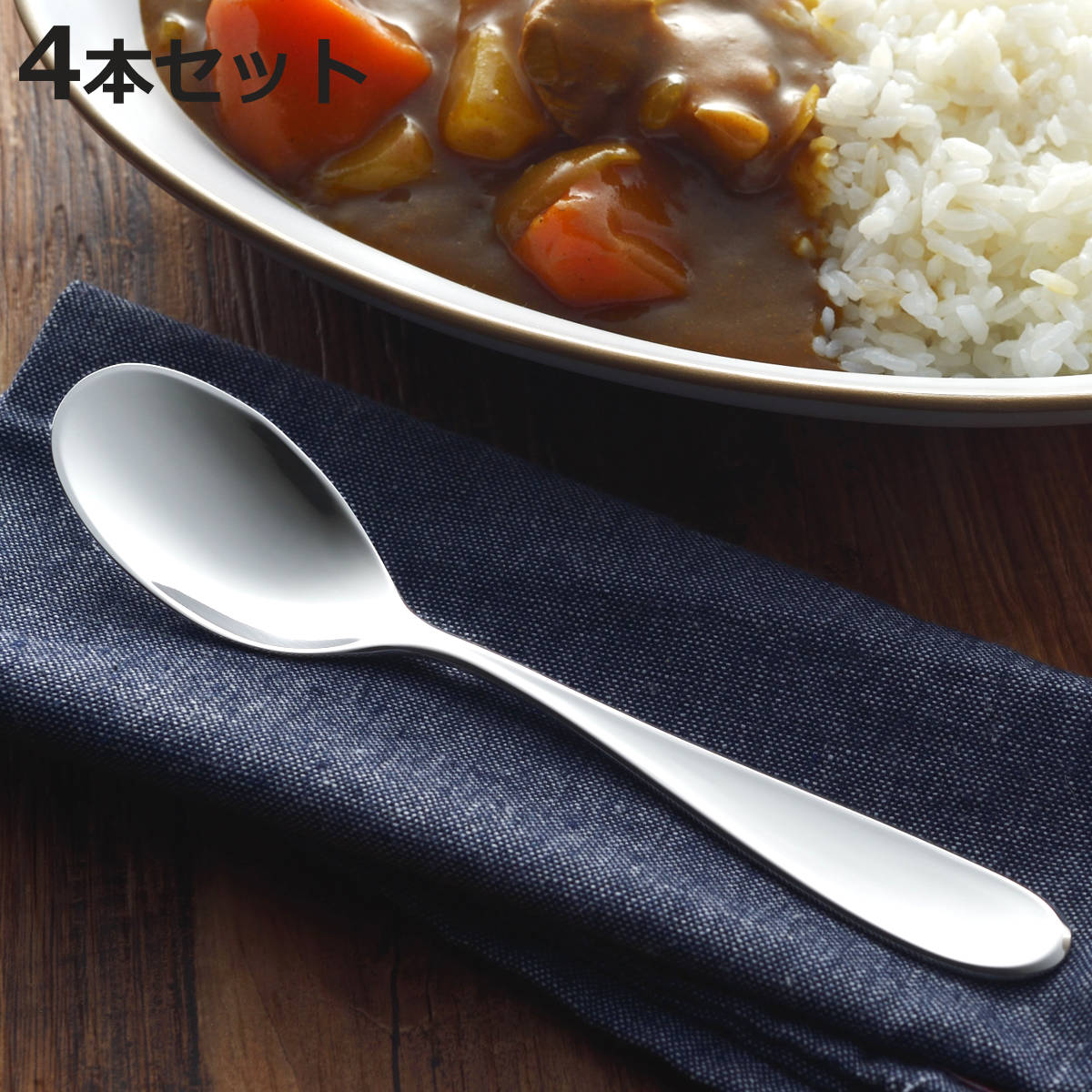 スプーン すくいやすいカレースプーン 4本セット ( ステンレス 日本製 燕三条 カレー カトラリー 18cm )