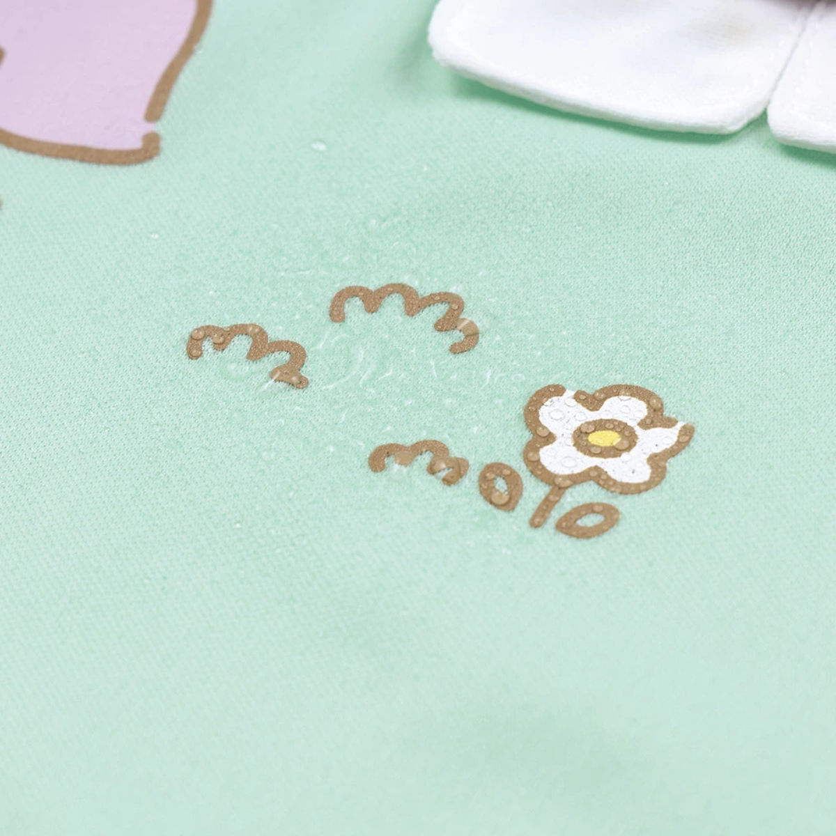 大好きなキャラクターと楽しくお食事キャラクターがとても可愛いダイカットベビーエプロンです。太もも部分までしっかりとカバーできる形で、食べこぼしを防ぐのに役立ちます。胸の部分にキャラクターの顔があるので、座ると一緒にお食事している気分になれます。