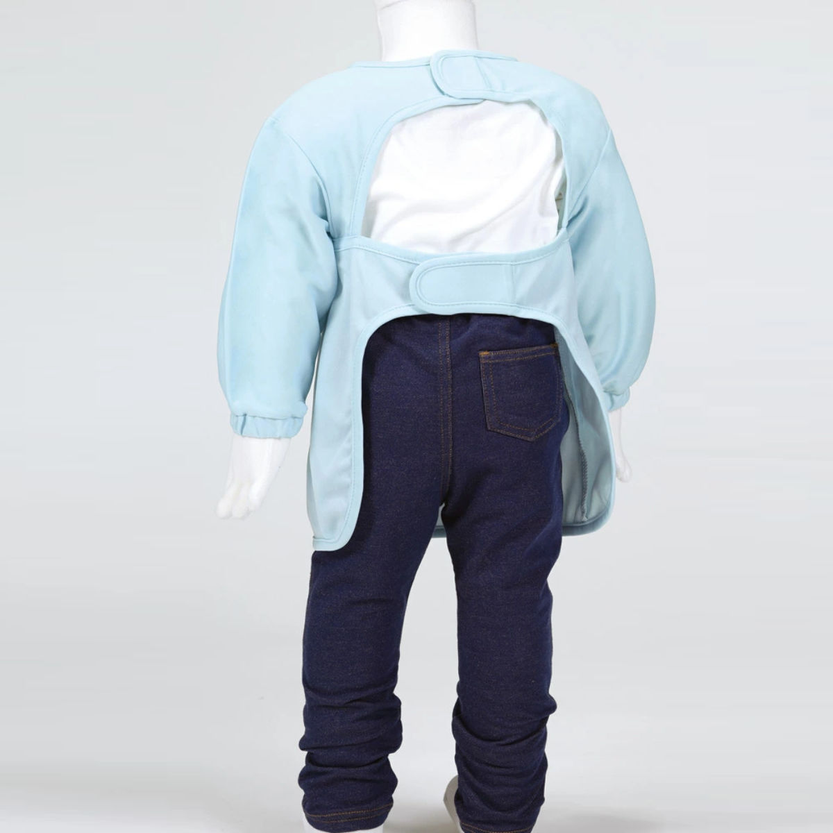 袖付きでしっかりガード食事の時に汚れがちな袖口や素肌をガードする長袖タイプです。袖口にはゴム入りで、汚れを気にせず楽しく食べられます。