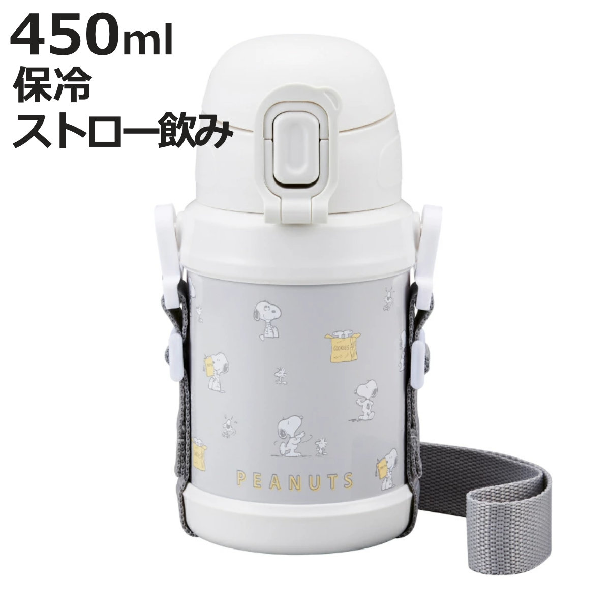冷たさしっかりキープの真空二重構造ステンレスボトル●スヌーピーの真空二重構造ステンレスボトルです。
