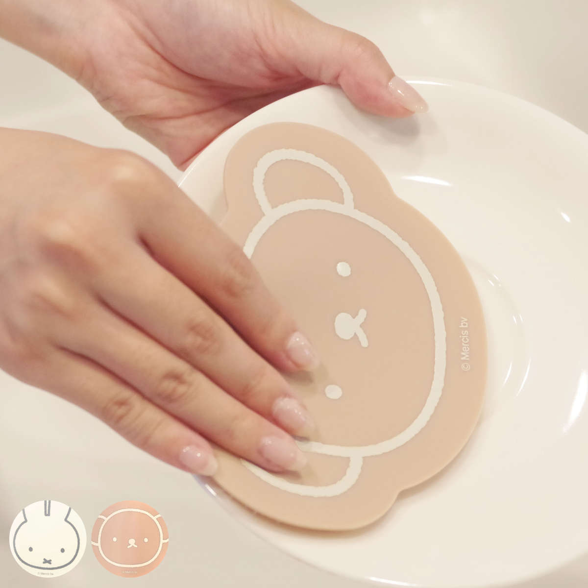 貼るだけで癒される 水切れの良いシリコーン製たわしミッフィーとボリスのお顔がプリントされた、優しい色合いが可愛いシリコン製のたわしです。吸盤付きなので、貼っておくことができて邪魔になりません。