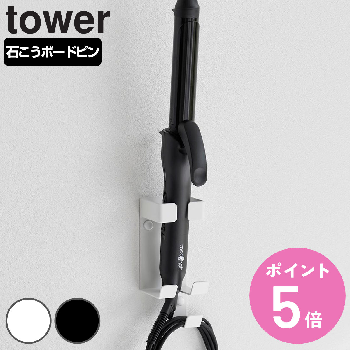 山崎実業 tower ウォールヘアーアイロンホルダー タワー 石こうボード壁対応 ( 4903208013451 タワーシリーズ ヘアーアイロンホルダー )
