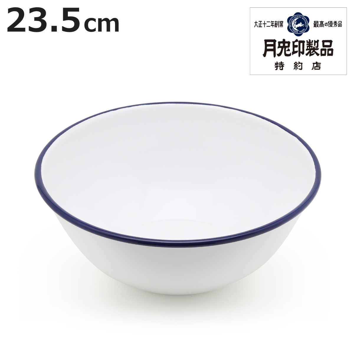 清潔感のあるネイビーの縁取りのホーローボウル 23.5cm調理ボウルや器としても使いやすいボウルです。4〜5人で食べるサラダの盛り付けにぴったりな23.5cmサイズです。粉を混ぜるのに便利な大きさなのでお菓子作りやパン作りの時に便利にお使いいただけます。