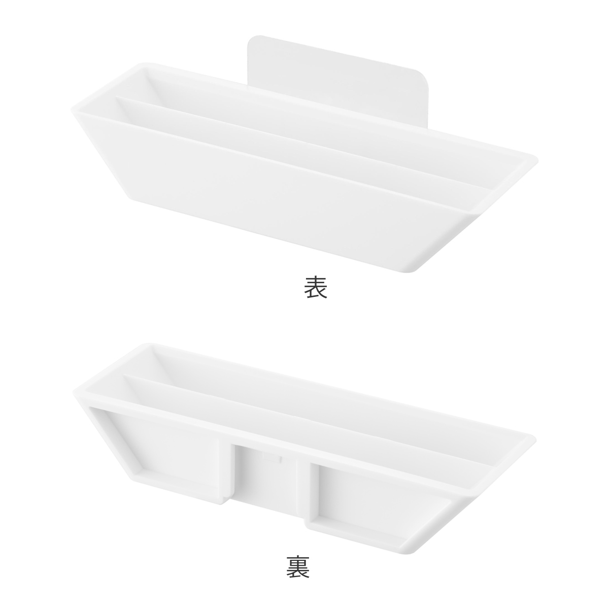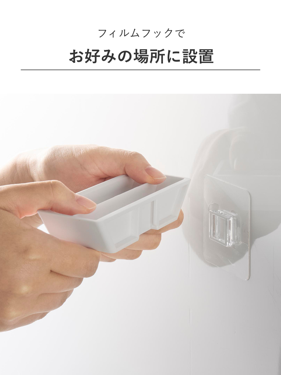 | サイズ | 約 幅13.4×奥行4.3×高さ2.4(cm) (フィルムフック含まず) フィルムフック接着面:約 幅6×高さ6(cm) 内寸(仕切り1つあたり):約 幅12.7×奥行8.9×高さ1.6(cm) |