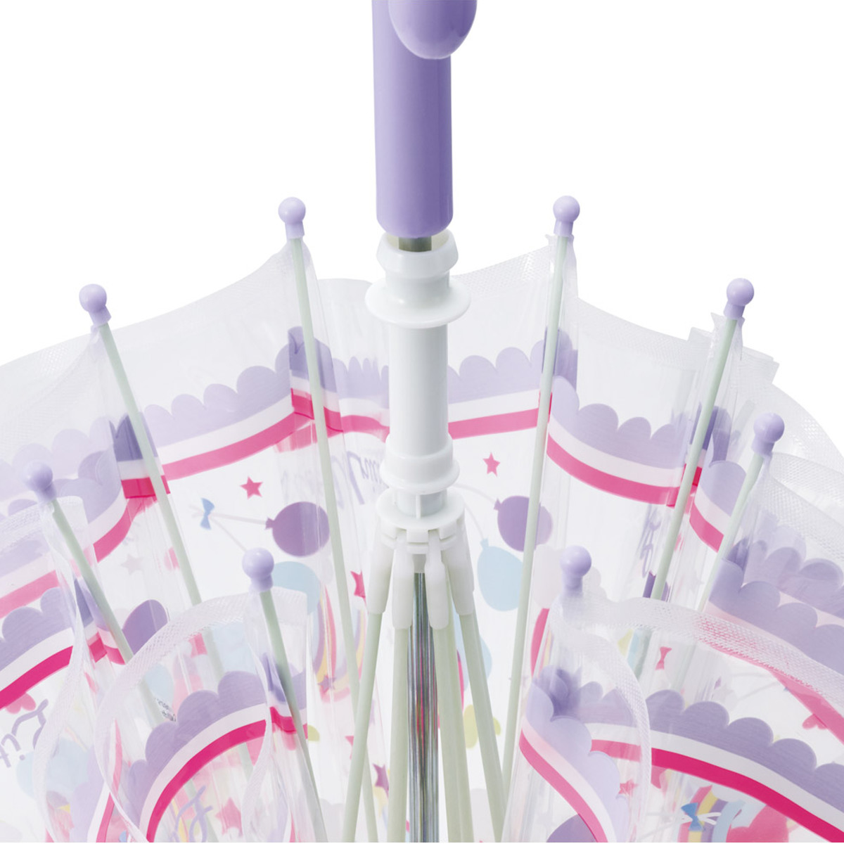 軽くて丈夫で折れにくい軽くて丈夫で折れにくい、グラスファイバーの傘骨を使用しています。石突きと露先は丸みがあるのでお洋服などに引っかかる心配がないのでお子様にも安心です。