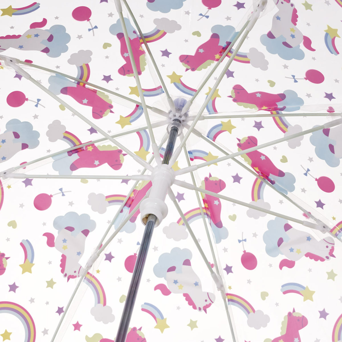 かわいいデザインの子供用ビニール傘●かわいいユニコーン柄のビニール長傘です。